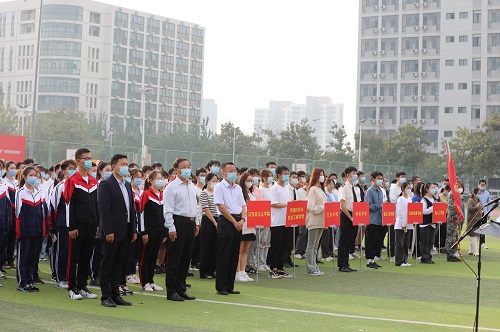 為熱烈慶祝中華人民共和國成立73周年,貫徹落實習近平總書記給南開大學8名新入伍大學生回信精神,迎接黨的二十大勝利召開,10月1日上午8時,學校舉行慶祝中華人民共和國成立73周年升旗儀式暨開展“愛國強軍我擔當、青春獻禮二十大”主題教育活動啟動儀式,校領導劉東志、張繼東出席,校黨委辦公室、校長辦公室、學工部、武裝部、校團委相關負責同志、各學院師生代表及援疆支教團全體成員參加此次活動。