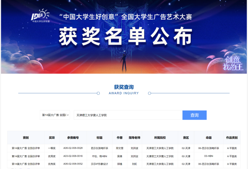 全國大學生廣告藝術大賽是由教育部高等教育司指導,中國高等教育學會、教育部高等學校新聞傳播學類專業教學指導委員會主辦,全國規模大、作品水準高、參加院校多、參加師生人數多、有廣泛社會影響力和公認度的高校文科A類賽事項目,從2005年起,已經成功舉辦14次評選活動。