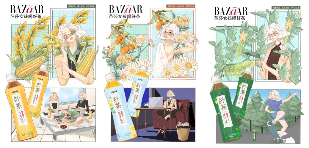 一等獎作品《芭莎女孩喝纖茶》