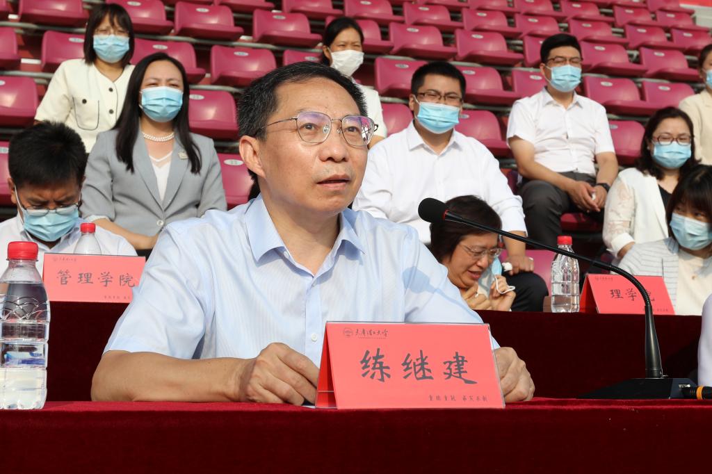 校黨委副書記、校長練繼建在開學(xué)典禮上向全體新生作形勢政策教育開學(xué)第一課。他指出,2022年是新時代新征程中具有特殊重要意義的一年,我們黨將召開二十大。他希望廣大青年學(xué)子爭當(dāng)偉大理想的追夢人,爭做偉大事業(yè)的生力軍,秉承“重德重能、求實求新”的校訓(xùn)和“愛國奉獻(xiàn)、求真務(wù)實、艱苦奮斗、開放包容、創(chuàng)新進(jìn)取”的天理精神,堅定理想信念,厚植家國情懷,堅持德能并進(jìn),實現(xiàn)全面發(fā)展,敢于創(chuàng)新創(chuàng)造,勇立時代潮頭,站好“起跑線”、奮進(jìn)“全過程”,讓青春在祖國和人民最需要的地方綻放絢麗之花。