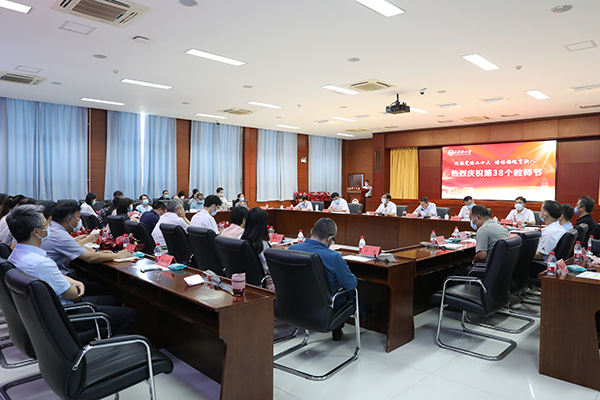 玉宇秋澄,丹桂初芬。在慶祝第38個(gè)教師節(jié)之際,我校召開“迎接黨的二十大 培根鑄魂育新人”教師節(jié)座談會(huì)。校領(lǐng)導(dǎo)劉東志、杜長(zhǎng)有、魏東、張繼東、陳勝勇、葉寧出席,學(xué)校有關(guān)部門負(fù)責(zé)同志參會(huì)。全國(guó)高校教師教學(xué)創(chuàng)新大賽獲獎(jiǎng)教師、學(xué)校高層次人才、從教滿30年的教職工、輔導(dǎo)員、新入職教師、“明德講堂”宣講團(tuán)成員、首期青年骨干教師研修班學(xué)員以及部分民主黨派教師代表參加座談會(huì)。