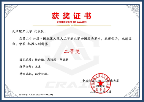 近日,第二十四屆中國機器人及人工智能大賽開啟巔峰對決。經過省賽和國賽的激烈競爭,我校師生代表隊成績突出,工程訓練中心教師王鑫指導,集成電路科學與工程學院楊云翔、高穎慧和電氣工程與自動化學院薛亞楠學生團隊的《基于物聯網的智慧農業室內無人機噴灑系統》項目榮獲國家級二等獎;《基于人工智能的電機故障診斷系統》和《低功耗智能防疫測溫小車》等2個項目分獲天津市級二等獎、三等獎。