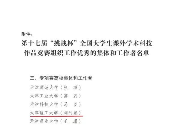 近日,第十七屆“挑戰杯”全國大學生課外學術科技作品競賽組委會對全國優秀組織工作集體、優秀組織工作者及優秀指導老師進行通報表揚。我校獲評第十七屆“挑戰杯”全國大學生課外學術科技作品競賽專項賽組織工作優秀集體,劉利奎獲評專項賽組織工作優秀工作者,聾人工學院袁甜甜、楊學、劉偉,管理學院郭健4位教師獲評競賽優秀指導教師。