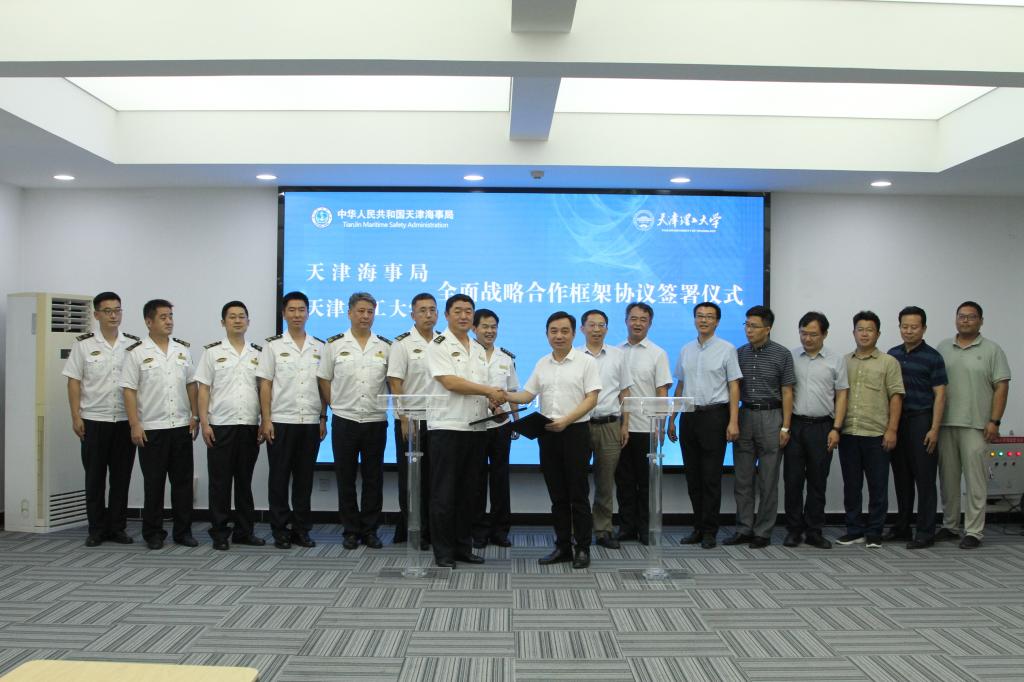 為服務交通強國戰略實施,推進天津海事局評估中心建設,進一步加強雙方戰略合作,實現互惠共贏,8月11日,學校與天津海事局簽署了《全面戰略合作協議》。校長練繼建、副校長葉寧,天津海事局局長聶乾震、副局長楊哲,以及雙方單位相關部門負責人出席簽約儀式并親切交流。