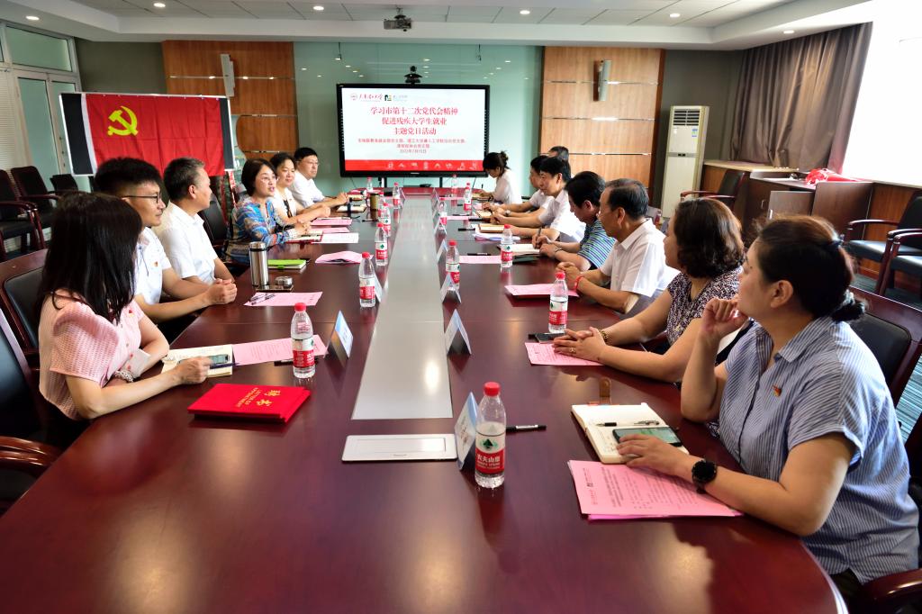 7月15日下午,聾人工學院綜合黨支部與市殘聯教育就業部黨支部、津貿投協會黨支部聯合開展“學習市第十二次黨代會精神 促進殘疾大學生就業”主題黨日活動,市殘聯黨組成員、副理事長、一級巡視員李建存出席。校黨委副書記郭滇華、副校長張繼東會見了市殘聯和津貿投協會一行,就貫徹落實市第十二次黨代會精神,凝聚政校企合力為高質量人才培養賦能進行了深入探討。