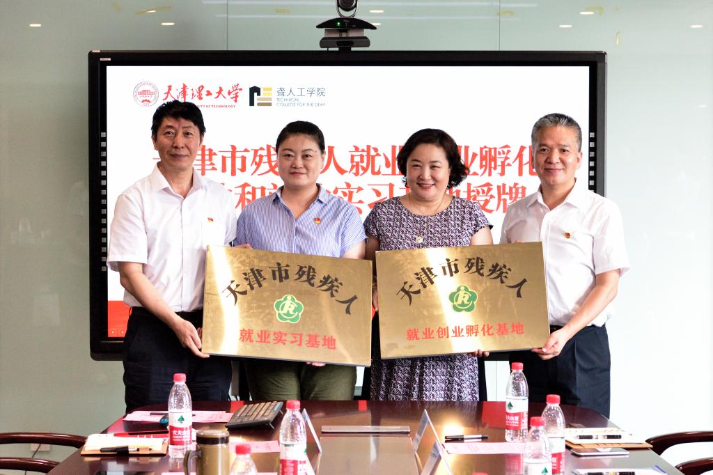 黨日活動中,市殘聯為天津市殘疾人就業創業孵化基地和就業實習基地授牌,津貿投協會向聽障大學生提供了就業實習崗位,聾人工學院向就業創業導師頒發了聘書。