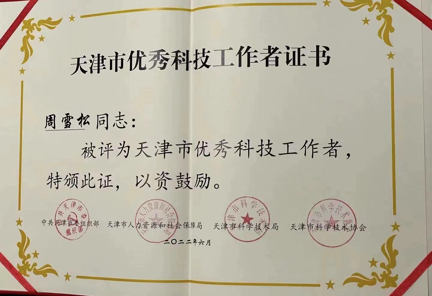 近日,天津市委組織部、市人社局、市科技局、市科協下發《關于評選表彰天津市優秀科技工作者(標兵)的通知》(津科協〔2022〕25號),我校電氣工程與自動化學院周雪松教授獲批“天津市優秀科技工作者”。
