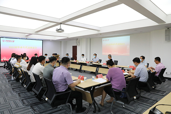 6月27日,2022屆畢業生代表座談會在辦公樓216會議室舉行,校領導劉東志、杜長有、陳勝勇與10余名畢業生代表親切座談。黨委辦公室、黨委學工部、教務處、研究生院、后勤管理處、團委、圖書館、校友工作辦公室等部門主要負責同志出席座談會。會議由校黨委副書記杜長有主持。
