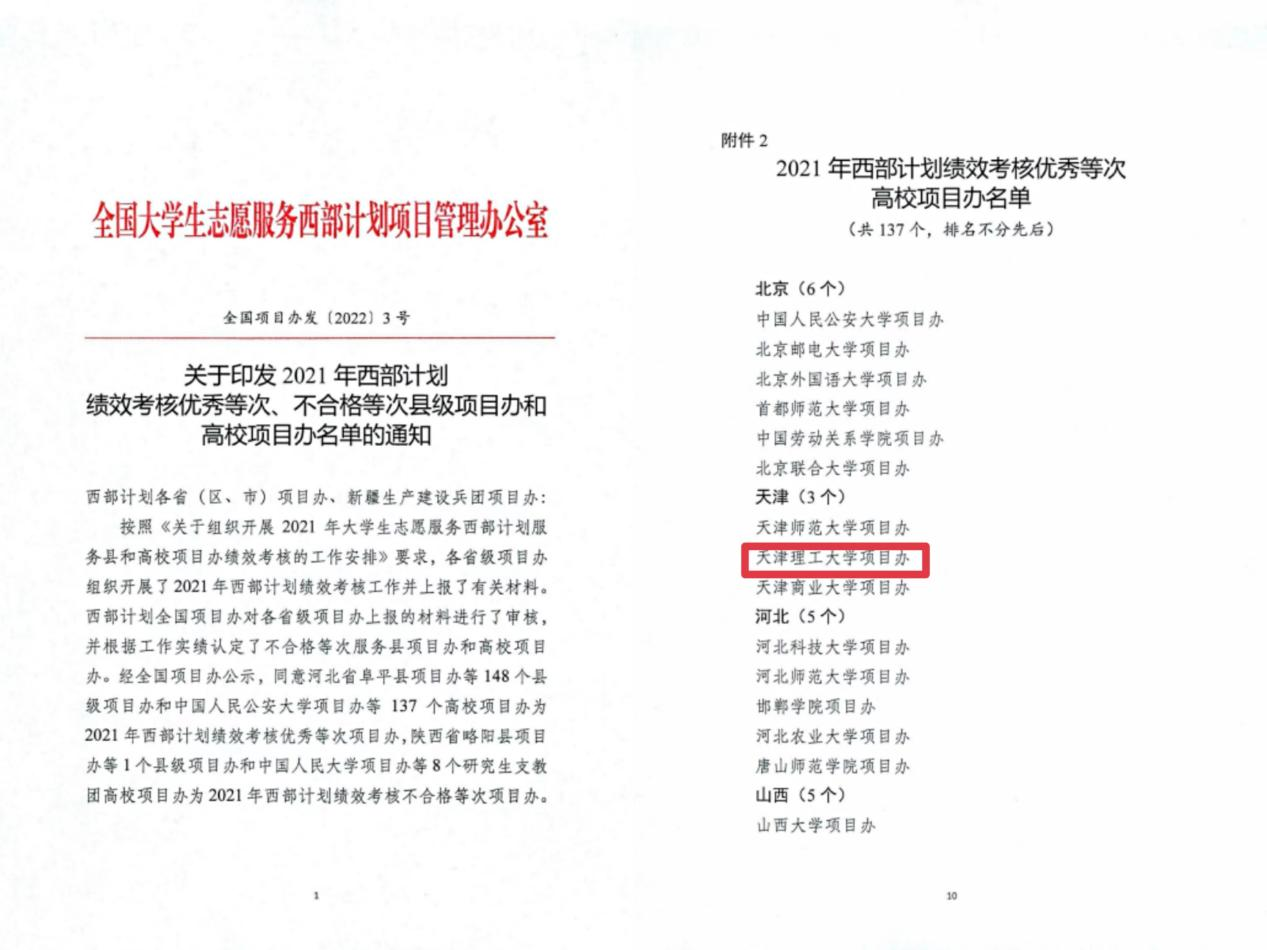 近日,全國大學生志愿服務西部計劃項目管理辦公室發布《關于印發2021年西部計劃績效考核優秀等次、不合格等次縣級項目辦和高校項目辦名單的通知》,學校再次獲批“2021年全國西部計劃績效考核優秀等次高校項目辦”。