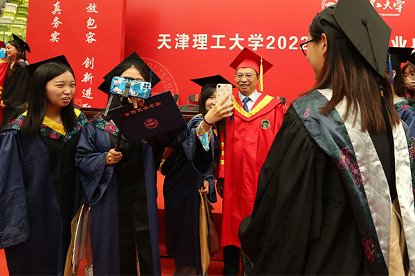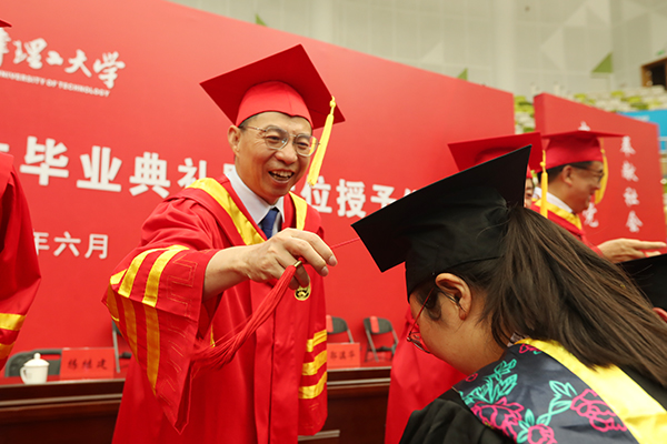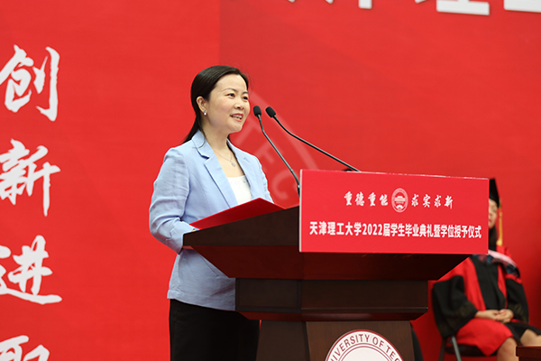6月18日,天津理工大學(xué)2022屆學(xué)生畢業(yè)典禮暨學(xué)位授予儀式在體育館舉行。校領(lǐng)導(dǎo)練繼建、郭滇華、杜長有、魏東、張繼東、陳勝勇以及各學(xué)院主要負(fù)責(zé)同志出席,并為獲得學(xué)位的畢業(yè)生撥正流蘇。畢業(yè)典禮由副校長張繼東主持。