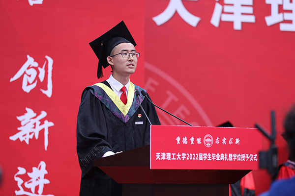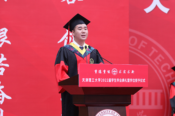 本科畢業(yè)生代表、電氣工程與自動(dòng)化學(xué)院張子軒滿懷深情地回顧了四年大學(xué)時(shí)光,感恩學(xué)校的培養(yǎng),老師的教導(dǎo)和同學(xué)的陪伴,表示要將天理青年的青春夢想和中華民族偉大復(fù)興的中國夢緊密相連,不負(fù)韶華、不負(fù)時(shí)代、不負(fù)人民,跑出“天理人”的風(fēng)采。