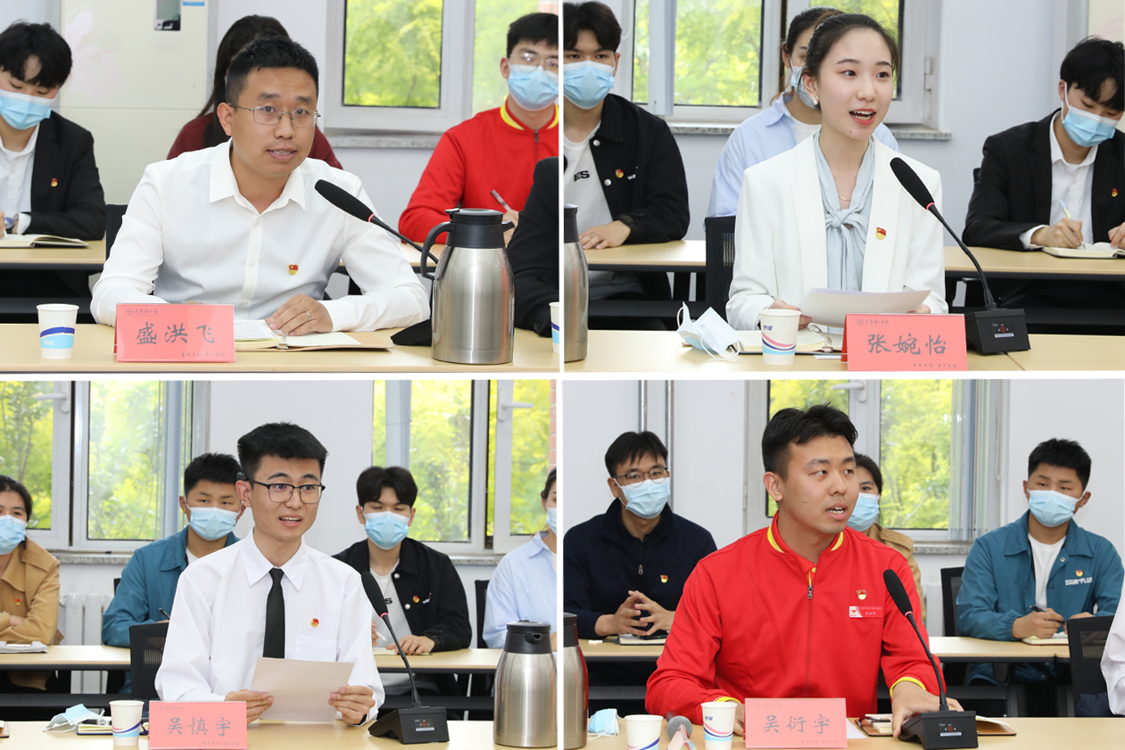 座談會上,“天津青年五四獎?wù)录w”獲獎團隊、市“兩紅兩優(yōu)”先進集體及個人、思政課教師、青馬學員等8名師生代表結(jié)合自身工作和學習生活實際,圍繞共青團組織育人職責、青年思想引領(lǐng)、思政課創(chuàng)新、科技創(chuàng)新引擎、紅色基因傳承等方面進行交流發(fā)言。