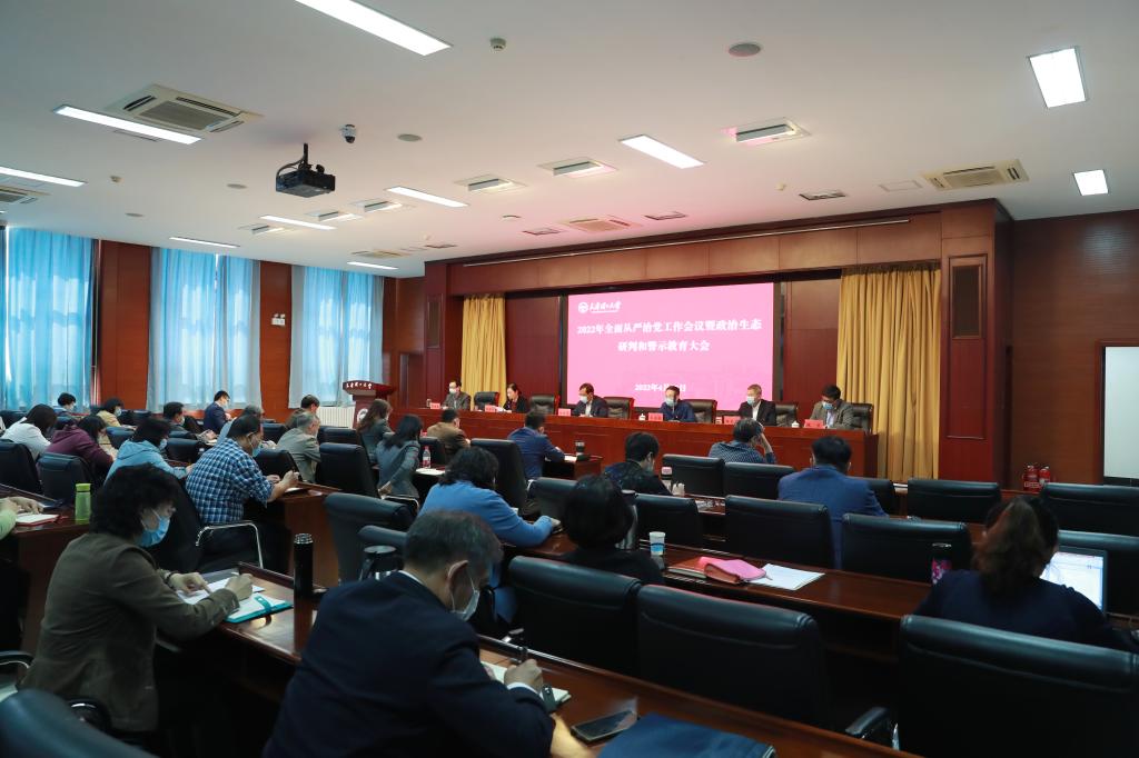 校黨委副書記、校長練繼建總結了2021年學校全面從嚴治工作取得的成果和經驗,并圍繞強化政治建設、加強忠誠履職擔當、系統深化思政改革創新、選優建強領導班子和干部隊伍、堅持不懈縱深推進全面從嚴治黨等六大方面,對2022年全面從嚴治黨工作進行部署,強調全校各級黨組織和領導干部要鑄牢政治忠誠,強化政治引領,加強黨對學校工作的全面領導,發揚自我革命精神,深入推進全面從嚴治黨,推進黨的建設與中心工作深度融合,以高質量黨建引領學校事業高質量發展。