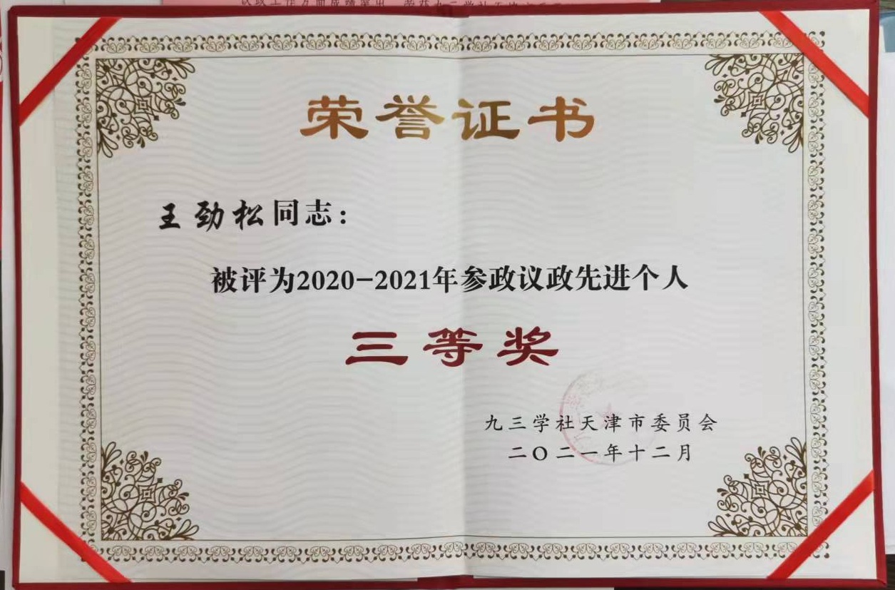 日前,九三學社市委會對2020-2021年期間在參政議政方面履職取得突出成績、作出突出貢獻的先進集體和先進個人予以表彰。我校九三學社社員安鋼獲“參政議政工作突出貢獻獎”,王勁松獲“2020-2021年度參政議政工作先進個人三等獎”。