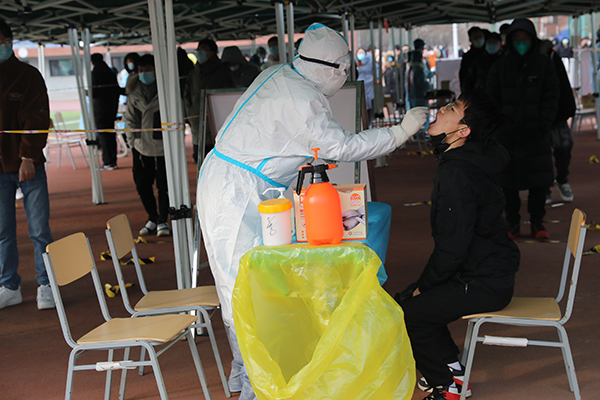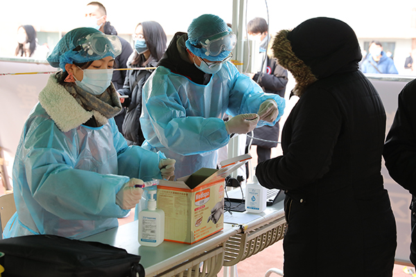 醫(yī)務(wù)工作者認(rèn)真進(jìn)行核酸檢測(cè)樣本采集