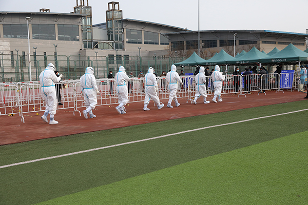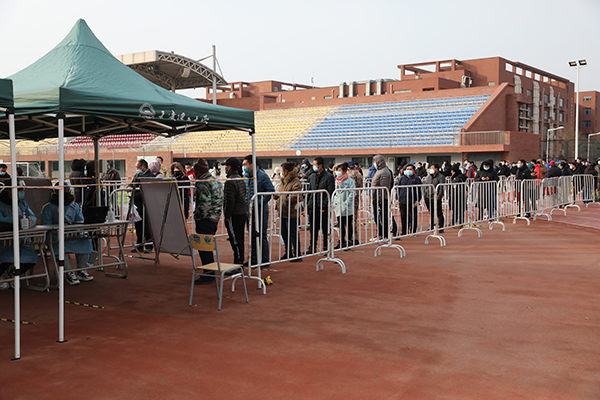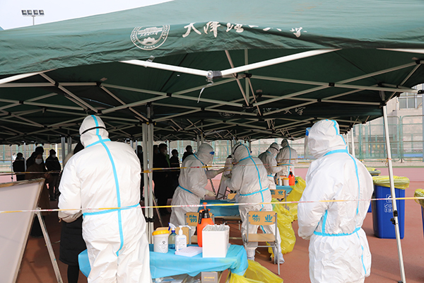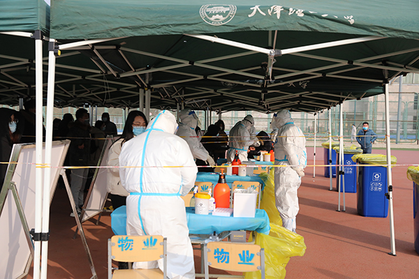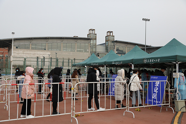根據(jù)市區(qū)兩級(jí)防控指揮部要求,學(xué)校從2022年1月9日7:00開始執(zhí)行封閉管理,學(xué)校立即啟動(dòng)疫情防控應(yīng)急預(yù)案,在南區(qū)體育場(chǎng)設(shè)立核酸檢測(cè)點(diǎn),迅速組織開展全員核酸檢測(cè),統(tǒng)籌人力物力和設(shè)備資源,爭(zhēng)時(shí)間保效率、分步壓茬推進(jìn)全員核酸檢測(cè)工作,確保安全有序高效完成。在封閉管理期間,學(xué)校全力做好在校師生員工飲食和各項(xiàng)生活服務(wù)保障。