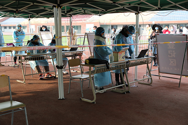 志愿者引導(dǎo)師生核酸檢測(cè)