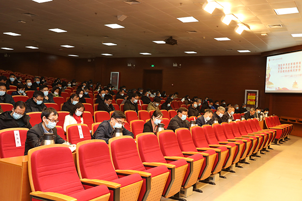 1月5日,學(xué)習(xí)貫徹黨的十九屆六中全會(huì)精神專題學(xué)習(xí)研討班在圖書(shū)館報(bào)告廳舉行。市委黨史學(xué)習(xí)教育領(lǐng)導(dǎo)小組成員,市委黨史學(xué)習(xí)教育宣講團(tuán)成員,天津市中國(guó)特色社會(huì)主義理論體系研究中心常務(wù)副主任,天津社會(huì)科學(xué)院黨組書(shū)記、院長(zhǎng)靳方華為黨員干部作專題輔導(dǎo)報(bào)告。校領(lǐng)導(dǎo)劉東志、練繼建、郭滇華、杜長(zhǎng)有、鄭清春、魏東、張繼東、陳勝勇出席,校黨委副書(shū)記杜長(zhǎng)有主持。校院兩級(jí)黨委理論學(xué)習(xí)中心組成員、全體處級(jí)干部參加。