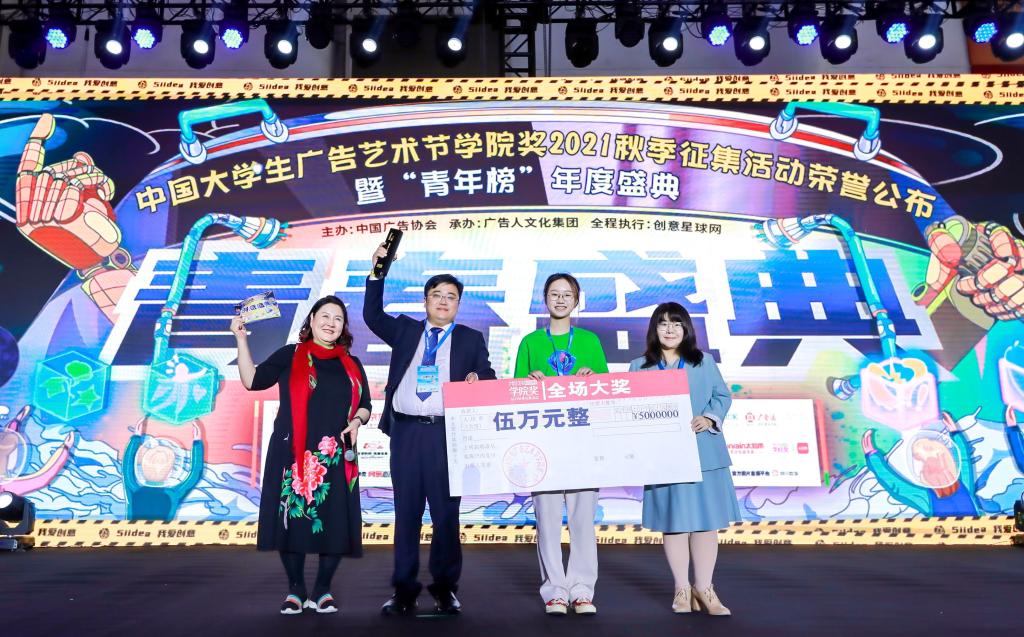 12月12日“2021年中國大學(xué)生廣告藝術(shù)節(jié)學(xué)院獎秋季賽頒獎典禮”在廈門舉行。本賽季全國共有1147所高校參加,作品總量達21萬余組。管理學(xué)院2019級市場營銷專業(yè)應(yīng)樺靜同學(xué)為伊利集團高端功能奶品牌舒化創(chuàng)作的短視頻《偷聽老師向我媽告狀》,經(jīng)過初評、復(fù)評、決審等嚴格評審程序,獲得舒化品牌短視頻賽道金獎,同時獲得企業(yè)頒發(fā)的金獎。在參加“全場大獎”的激烈角逐中,應(yīng)樺靜同學(xué)的作品脫穎而出,摘取本賽季21萬余組作品中唯一的“全場大獎”,這也是天津市高校首次獲此殊榮。