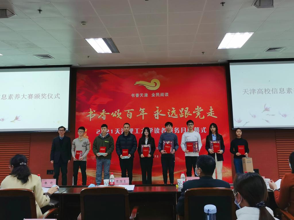 服務月期間,恰逢天津高校信息素養大賽,在圖書館的廣泛動員和深入培訓下,我校參賽總人數位居全市高校首位,獲得最佳組織獎,陳勝勇為參賽獲獎同學頒發證書和獎品。