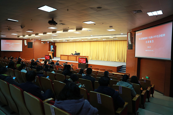 12月2日下午,學習貫徹黨的十九屆六中全會精神宣講報告會在圖書館報告廳舉行,校黨委書記劉東志作全會精神專題宣講,校黨委副書記、校長楊慶新主持。校院兩級黨委理論學習中心組成員、機關全體處級干部、宣講團師生代表、基層黨支部師生黨員代表200余人聆聽報告。