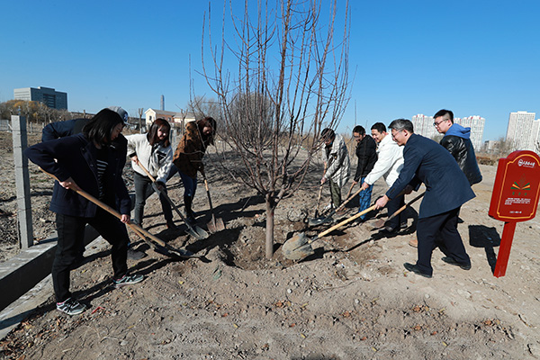 11月26日,由我校青年教師捐資籌建的“青驕林”在明理湖畔落成,首批種植5棵海棠樹。黨委教師工作部相關負責同志和青年教師代表共同為“青驕林”揭牌。