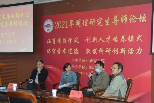 本次論壇以“涵育清朗學風,創新人才培養模式;恪守學術道德,激發科研創新活力”為主題,共設置嘉賓報告、交流互動和新聘導師簽署立德樹人責任落實承諾書三個環節。王成教授、鐘蕾教授、劉軍教授分別以《和研究生友好相處》《如何提高研究生的科研創新能力》《培養好學生的科研能力、做好職業規劃》為題作主題報告。三位導師充分結合自身培養經驗、為新聘導師在研究生教育培養方面提供優秀范例。