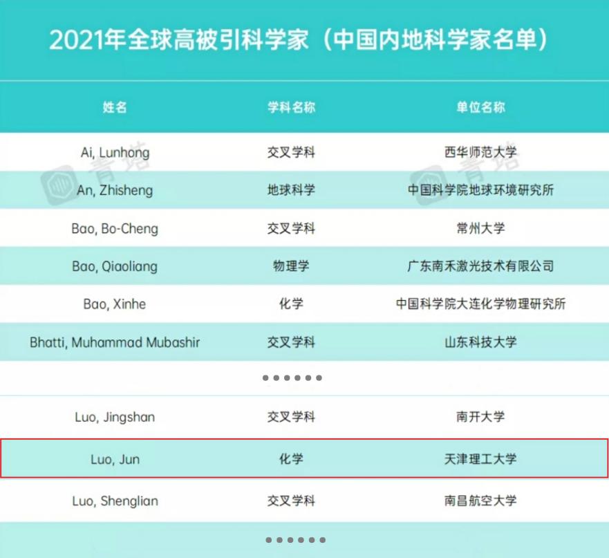 全球“高被引科學家”名單由Web of Science所屬的科睿唯安發布。經過分析評估2010年-2020年期間被Web of Science收錄的高被引論文,將科學家按照被引頻次進行排名、統計、遴選而得出。入榜該名單,標志著科學家的研究成果在全世界發揮了重要的學術影響力,對所在學科領域的發展做出了卓越貢獻。