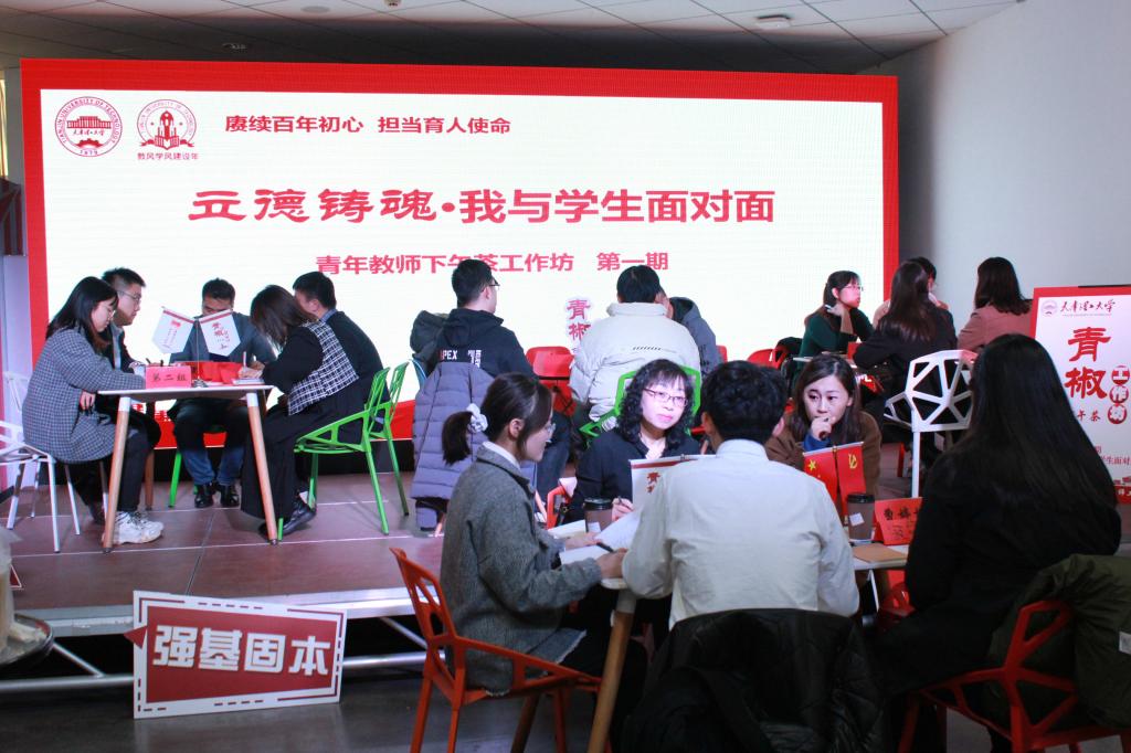 工作坊以“立德鑄魂·我與學生面對面”為主題,通過小組研討、成果分享、導師點評等環節,基于專業學科特點,共同探討“如何有效開展課堂教育和課外育人”、“如何開展課程思政建設,實現黨風、教風、學風互促互進”等話題。