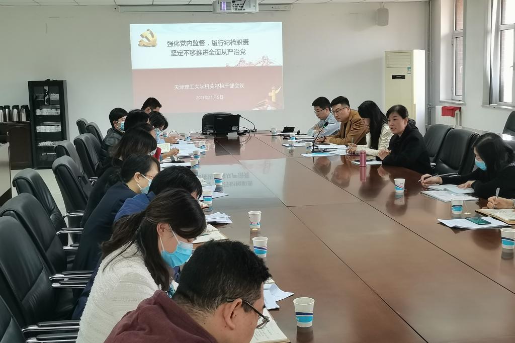 會上,機關(guān)紀委委員介紹開展“黨風(fēng)廉政建設(shè)宣傳教育月暨警示教育月”的活動方案,領(lǐng)學(xué)《天津理工大學(xué)關(guān)于運用監(jiān)督執(zhí)紀“第一種形態(tài)”的實施辦法》,解讀《中國共產(chǎn)黨紀律處分條例》并進行警示案例教育。機關(guān)紀委書記做“監(jiān)督是紀檢干部的首要職責”的業(yè)務(wù)培訓(xùn),并對安排部署近期重點工作。