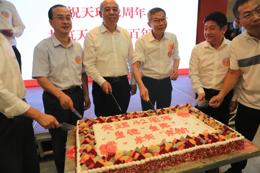 校領導楊慶新、杜長有與校友們同切蛋糕,祝福母校42歲生日快樂,也祝福全體天理校友中秋節快樂!隨后,校友們共同品嘗了學校食堂的“網紅面”。