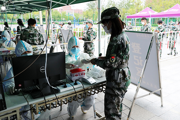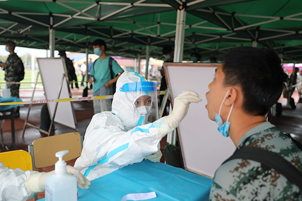 當天上午8時,學校設置的2個標準化采樣場的18條登記采樣通道同時開展檢測篩查。