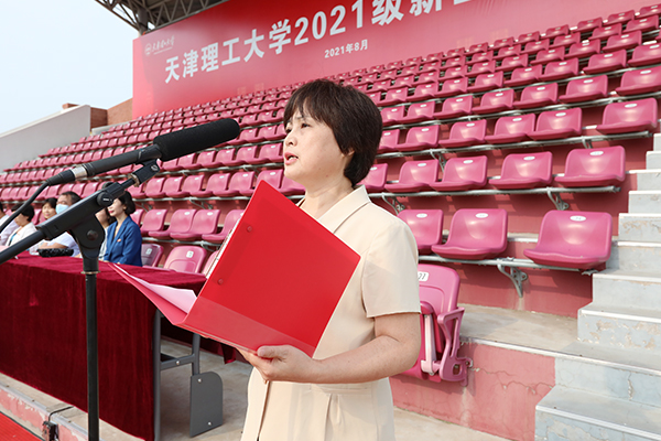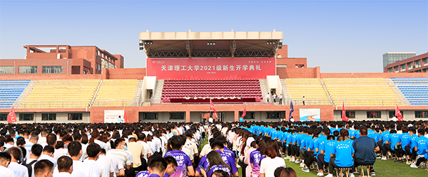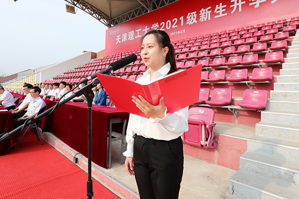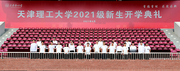 8月28日,天津理工大學2021級新生開學典禮在運動場舉行。校領導劉東志、楊慶新、郭滇華、杜長有、鄭清春、魏東、張繼東、陳勝勇出席,學校有關部門、各學院負責人及教師代表參加。開學典禮由副校長鄭清春主持。