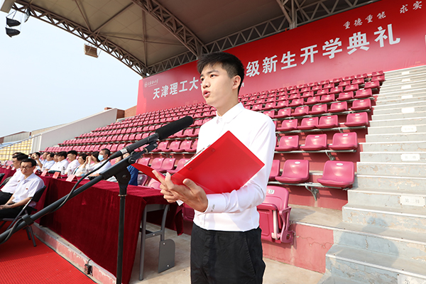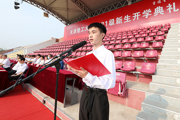 新生代表、電氣工程與自動化學院本科生李韜與計算機科學與工程學院研究生張紫鑫,共同表達了進入天理校園所感受到的溫暖與關懷,表示要時刻牢記“天理人”身份,勤學篤志、潛心鉆研、持之以恒、鍥而不舍,秉承“重德重能,求實求新”的校訓精神,樹立為祖國為人民永久奮斗、赤誠奉獻的堅定理想,努力成為德智體美勞全面發展的社會主義建設者和接班人。