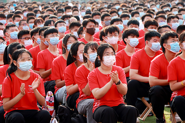 開學典禮上,校領導為新生代表佩戴校徽,7000余名新生共同分享成為“天理人”的喜悅之情。