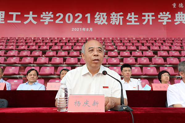 校黨委副書記、校長楊慶新在開學典禮上向全體新生作形勢政策教育開學第一課。他指出,2021年是一個偉大的年份,中國共產黨成立100周年,開啟了全面建設社會主義現代化國家新征程。在慶祝中國共產黨成立100周年大會上,習近平總書記寄語中國青年:“未來屬于青年,希望寄予青年。新時代的中國青年要以實現中華民族偉大復興為己任,增強做中國人的志氣、骨氣、底氣,不負時代,不負韶華,不負黨和人民的殷切期望。”高揚的國旗下,“請黨放心,強國有我”的錚錚誓言,鏗鏘有力、久久回蕩。