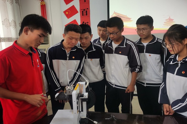 科普扶智,助力鄉(xiāng)村振興。實(shí)踐隊(duì)積極投身于鄉(xiāng)村教育事業(yè),在天津市教學(xué)名穆浩志的帶領(lǐng)下,先后在薊州區(qū)羅莊子鎮(zhèn)和桑梓鎮(zhèn),為中小學(xué)生宣傳科學(xué)文化知識(shí)。實(shí)踐隊(duì)成員結(jié)合專業(yè)特點(diǎn),為中小學(xué)生們展示了掃地機(jī)器人、機(jī)器狗、3D打印機(jī)及第七屆全國(guó)大學(xué)生工程訓(xùn)練綜合能力競(jìng)賽獲獎(jiǎng)作品勢(shì)能小車等一系列科技作品,手把手指導(dǎo)中小學(xué)生們與機(jī)器人進(jìn)行互動(dòng),近距離體會(huì)到科學(xué)知識(shí)的神奇魅力。