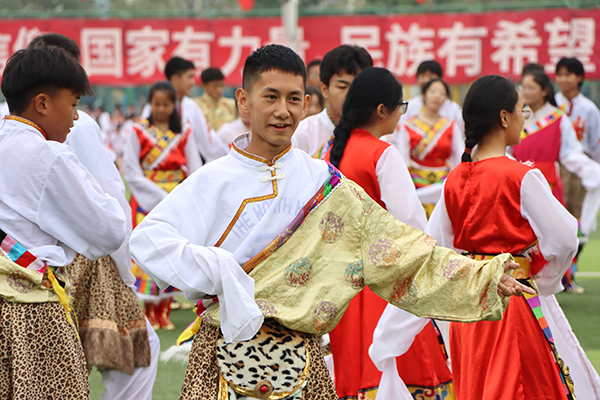 隨后,紅光中學西藏班學生用熱情洋溢的舞蹈,展示了“民族學生心向黨”。由天津體育職業學院100人組成的表演方陣帶來的“青春在黨旗下集結”,表達了有志青年響應祖國號召、聽從黨的指揮,奮勇前行勇挑重擔的決心。全體參演學生向黨旗敬禮,將全場氣氛推向高潮,以飽滿的熱情和良好的風貌向中國共產黨成立100周年獻禮。最后,展演活動在全場師生《沒有共產黨就沒有新中國》的歌聲中落下帷幕。