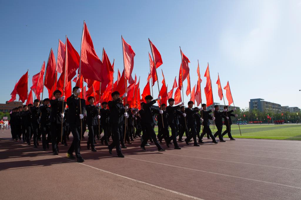 在雄壯的樂曲聲中,18個單位的學生方隊和教師方隊身著統一服裝,精神抖擻,以矯健的步伐、響亮的口號展現出他們昂揚向上、意氣風發的精神風貌,依次通過主席臺,接受檢閱,贏得了全校在場師生陣陣掌聲。