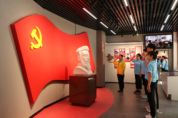 馬駿烈士紀念館內,同學們以時間為線,按照“品學兼優的回族青年”“五四運動的先鋒”“戰斗在白山黑水”“革命英勇就義”“弘揚烈士精神”五個部分進行了黨史講述。月琴、大衣、板凳、手稿、照片……馬駿各時期的實物照片150余件,多層面地反映了他雖然短暫但卻波瀾壯闊、偉大輝煌的一生,也讓天理師生深入學習和了解馬駿烈士的英勇事跡,感受他偉大的民族精神。