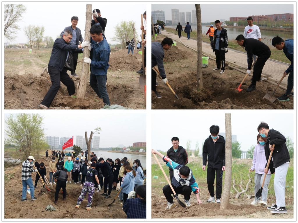 為踐行習近平總書記在參加首都義務植樹活動時的重要講話精神,落實天津市教委關于開展義務植樹40周年系列活動的通知要求,弘揚勞動精神,教育引導學生崇尚勞動、尊重勞動,4月11日上午,我校開展春季義務植樹活動。校黨委副書記杜長有、副校長張繼東,以及黨委學工部、后勤管理處、機械工程學院和化學化工學院師生200余人共同栽植樹苗。