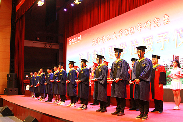 莊嚴的畢業(yè)典禮在雄壯的國歌聲中拉開帷幕。黨委副書記杜長有宣讀了《天津理工大學關(guān)于授予師帥等3名同學博士學位、田英等739名同學碩士學位的決定》。