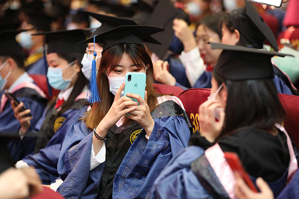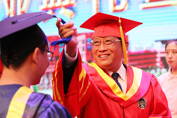 最后,全體校領(lǐng)導(dǎo)、各學院領(lǐng)導(dǎo)及導(dǎo)師代表向畢業(yè)生們贈送了畢業(yè)寄語,并為畢業(yè)生扶正流蘇。2021年研究生畢業(yè)典禮在全體師生《歌唱祖國》的歌聲中圓滿結(jié)束。