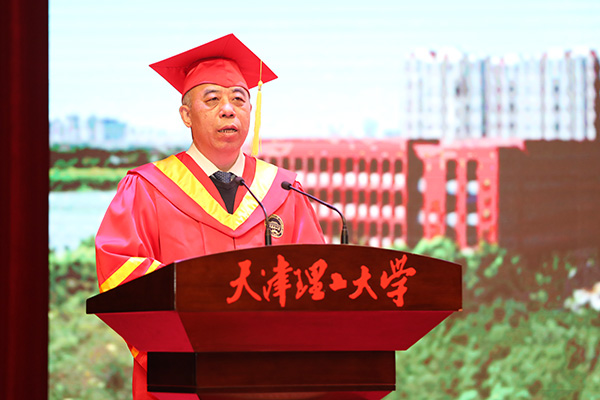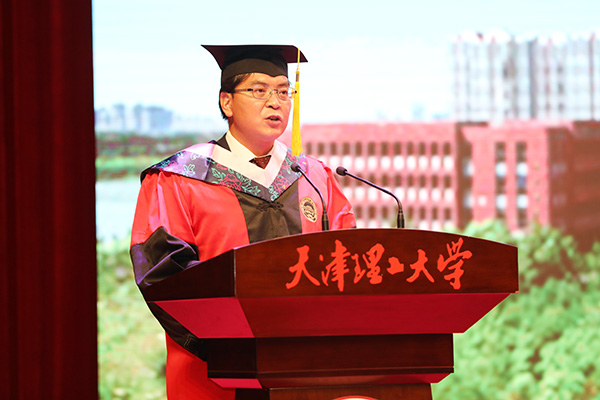 畢業(yè)典禮上,校長楊慶新教授為即將走上新征程的畢業(yè)生們上了一堂生動的“形勢政策第一課”。他肯定了畢業(yè)優(yōu)秀學子們的科研成果,贊揚了畢業(yè)生們在疫情的特殊背景下依然堅持“云”上組會,埋頭實踐,交出了更加精彩的畢業(yè)答卷。楊慶新指出,今年是中國共產(chǎn)黨成立100周年,是“十四五”開局之年,也是全面建設(shè)社會主義現(xiàn)代化國家新征程開啟之年。站在第二個百年奮斗目標的新起點,每個人的成長將與祖國發(fā)展同頻共振。他希望畢業(yè)生們一要勇負使命,矢志報國,接過天理人的“接力棒”,把愛國之情化為報國之行;二要勇立潮頭,爭做先鋒,創(chuàng)造更多“從0到1”的突破,爭做行業(yè)和時代的引領(lǐng)者;三要篤學實干,厚積薄發(fā),從實干中練就過硬本領(lǐng),譜寫屬于自己的輝煌,以“奮斗者”姿態(tài)用輝煌的成績慶祝中國共產(chǎn)黨成立100周年。