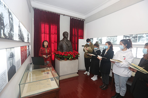 在全市上下持續掀起黨史學習教育熱潮中,我校充分發揮課堂主渠道作用,將黨史學習教育融入思政課教育教學之中,發揮以史鑒今、資政育人的作用。3月19日上午,馬克思主義學院教授楊蓮霞在中共中央北方局舊址紀念館為學生們主講“傳承和弘揚中國共產黨的‘精神譜系’培育有理想、有本領、有擔當的時代新人”思政實踐課。