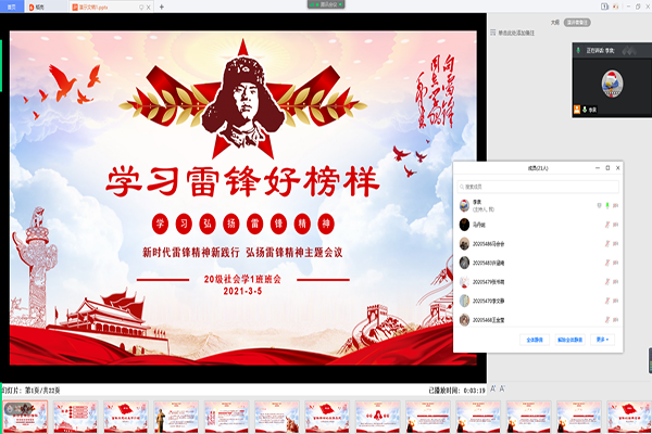 社會發展學院以線上形式開展“學雷鋒”主題團日活動。活動覆蓋16個支部400余人,同學們通過互聯網走近雷鋒,切身感受雷鋒精神并進行了熱烈討論。