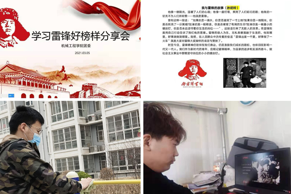 理學院團委組織線上觀看《世紀雷鋒》主題宣傳片,重溫雷鋒光輝事跡;研究生為考研自習室進行衛生大掃除,為大家營造良好學習環境;很多志愿者在家鄉就地參加社區服務,用實際行動踐行雷鋒精神,奉獻青春力量,獻禮建黨百年。