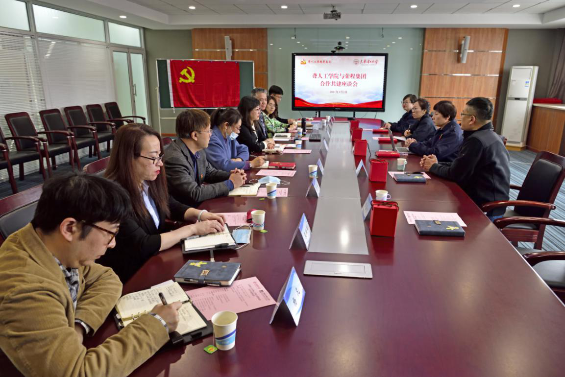 3月2日,榮程集團時代記憶展覽館總經理王延琪、副總經理趙軍一行4人來我校調研,校黨委副書記杜長有會見來訪一行,學工部、就業創業指導中心和聾人工學院相關同志參加調研座談。