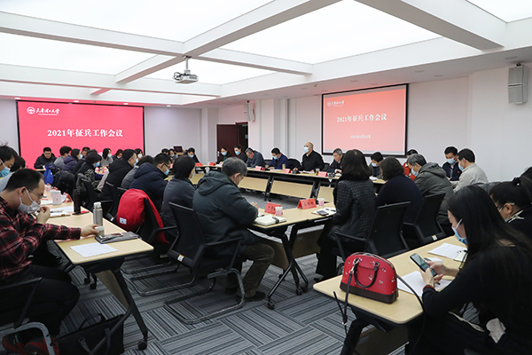為深入學習貫徹習近平強軍思想,傳達貫徹國務院、中央軍委征兵命令,確保年度征兵工作有序推進,1月22日上午,學校召開2021年征兵工作會。校長楊慶新、校黨委副書記杜長有出席,征兵工作領導小組成員單位、相關部門、各學院黨政主要負責同志及學生工作負責人參加會議。會議由校黨委副書記杜長有主持。