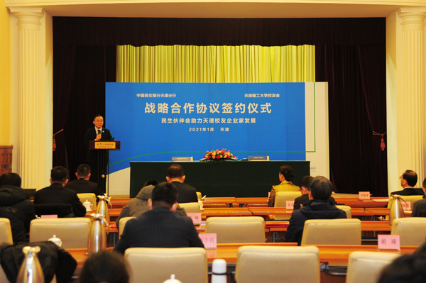 1月18日,天津理工大學校友會與中國民生銀行天津分行簽署戰略合作協議暨校友企業家聯合會金融服務主題講座在天津市政協俱樂部舉行。中國民生銀行天津分行黨委書記、行長李穩獅,副行長張含瑋、孫超,校黨委副書記郭滇華出席簽約儀式。天理校友會理事長、校友企業家聯合會名譽會長盧俊瑞,校友會副理事長、校友企業家聯合會會長孫汝為,校友企業家聯合會輪值會長陳克春、顧正、曹曉明,秘書長張亞軍及多位校友企業家代表參加活動。